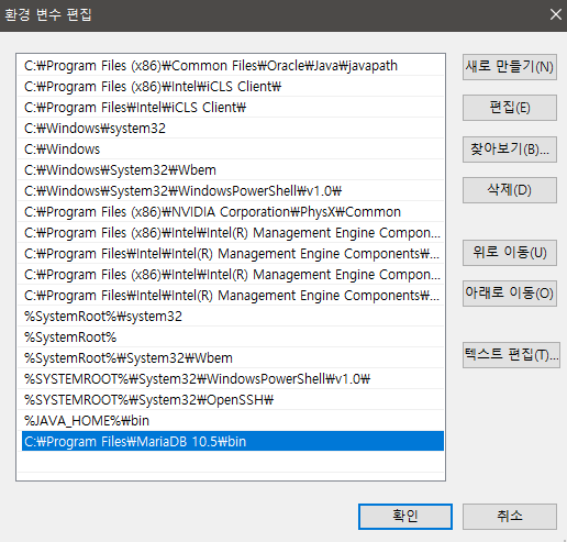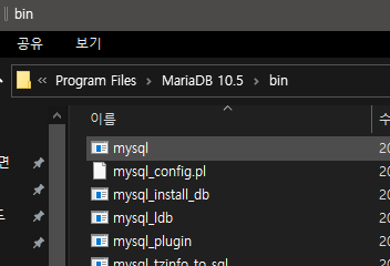 내가 사용하는 컴퓨터의 경우에는 C:\Program Files\MariaDB 10.5\bin 에 있었다.