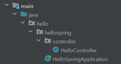 html 이 작성되었으면, hellospring/controller/HelloController.java 를 생성한다.