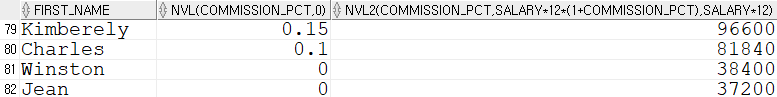 SELECT FIRST_NAME, NVL(COMMISSION_PCT, 0) FROM EMPLOYEES;