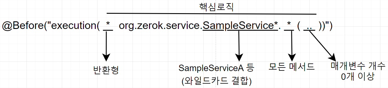 @Before("execution(* org.zerok.service.SampleService*.*(..))")