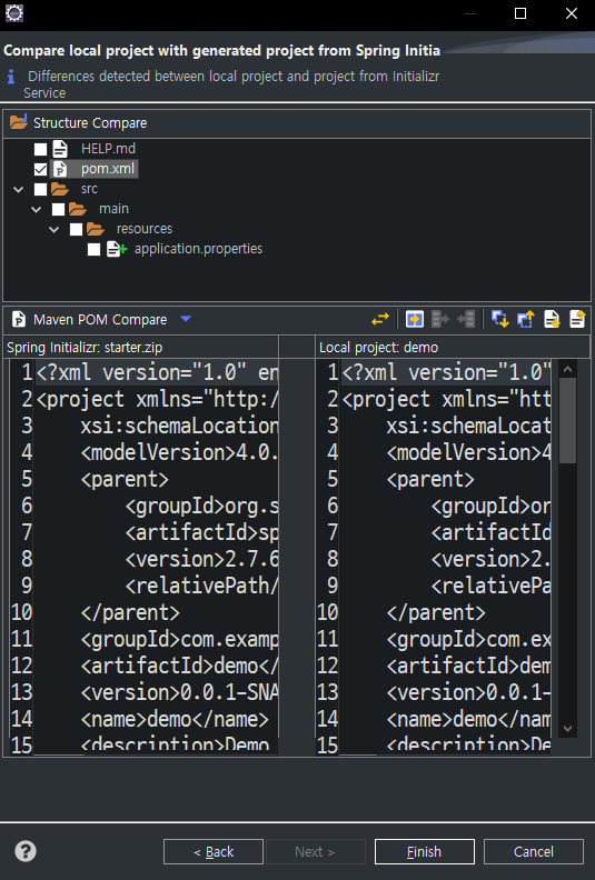 pom.xml 을 선택하고 Finish한다.