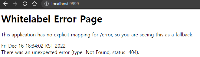 http://localhost:9999 로 들어가보면 아무 설정이 없기 때문에 fallback 페이지를 띄워준다.