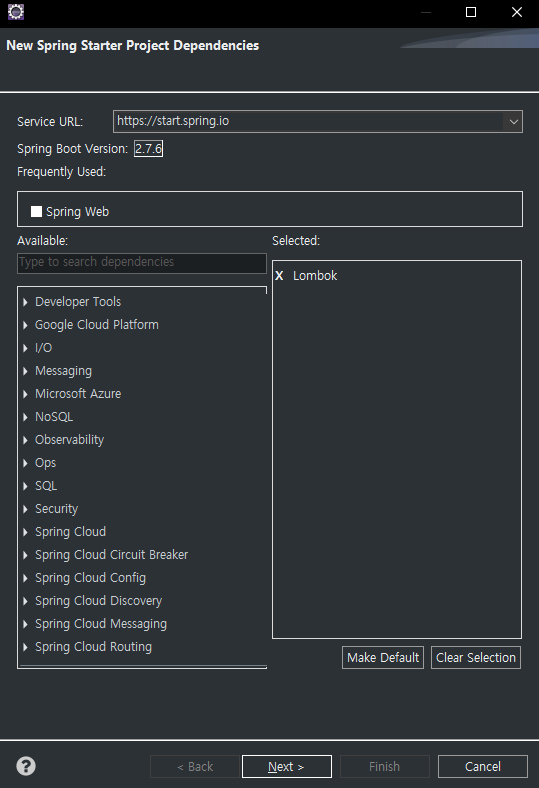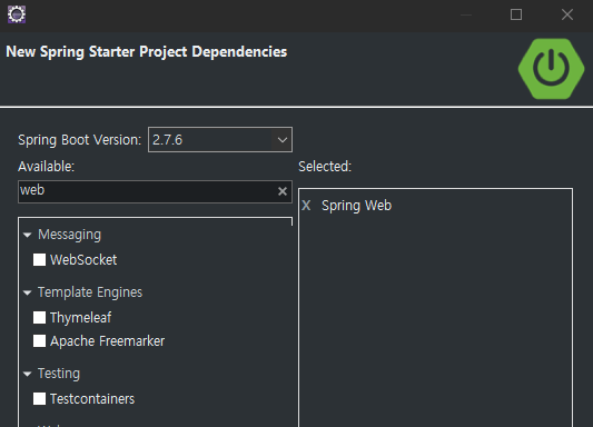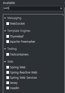 Spring Web만 일단 선택해서 넘어가자.