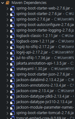 Maven Dependency를 까보면 라이브러리가 굉장히 많은 것을 확인할 수 있는데, 그에비해 pom.xml은 심플하다.