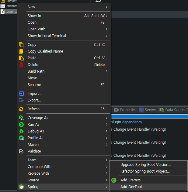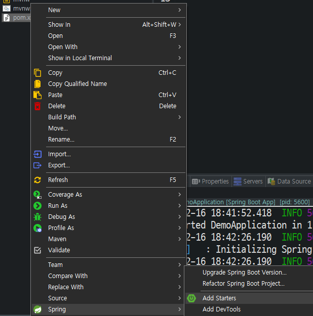 pom.xml을 우클릭하여 Spring... Add Starters를 선택한다.