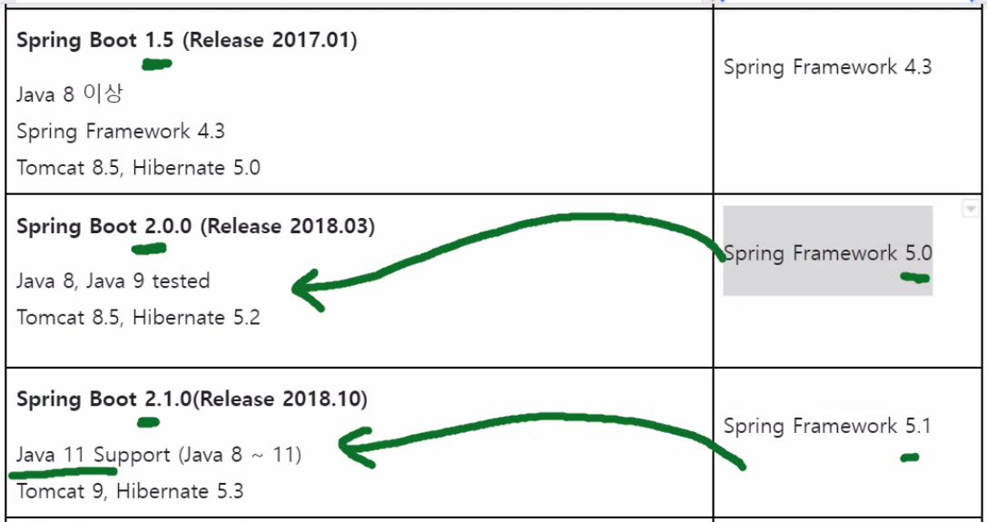 Spring Boot 2버전은 Spring Framework 5버전을 편하게 개발하기 위한 버전이다. 앞선 실습에서는 Spring Framework 5.2를 썼으므로 Boot도 2버전을 사용한다.