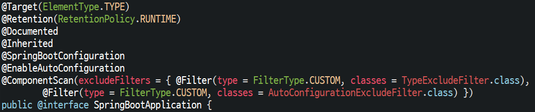 즉 속성 내에 적힌 것을 제외하고 현재 패키지와 하위 패키지들의 Component들(@Configuration, @Component, @Controller, @Service, @Repository)을 모두 scan 하겠다는 뜻이다.