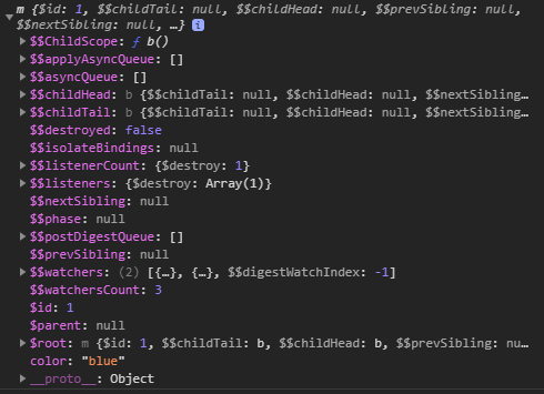 rootScope에서 정의된 color와 myCtrl 의 scope에서 정의된 color가 다르다.